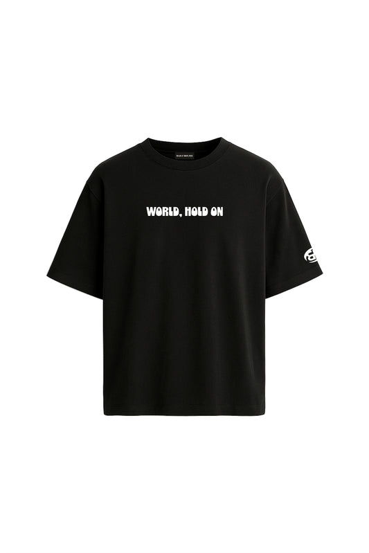 World, Hold On Black Oversized T-Shirt